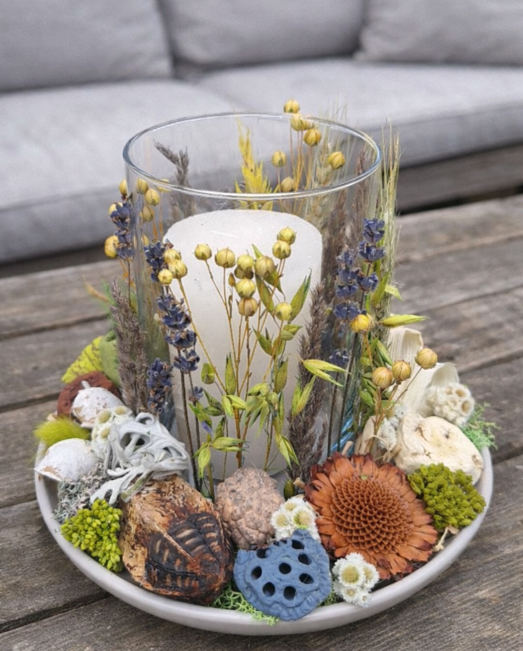 Prírodný aranžmán so sviečkou – Lesná harmónia